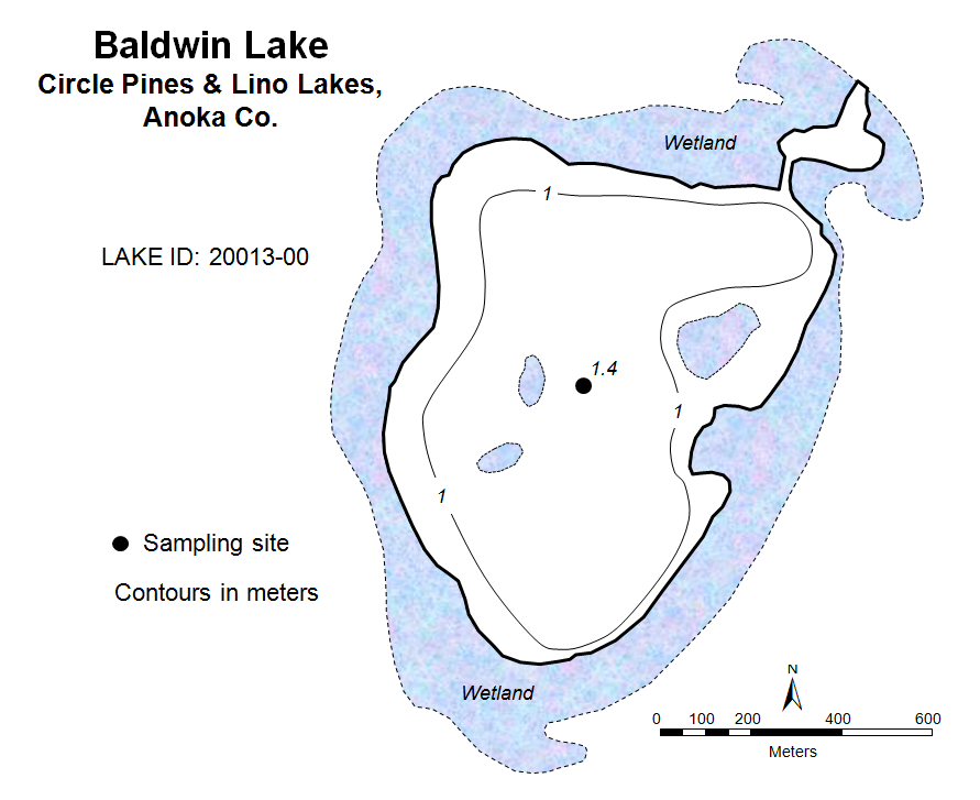 Baldwin Lake is located in Lino Lakes. It covers approximately 220 acres and has a maximum depth of about 2 meters.