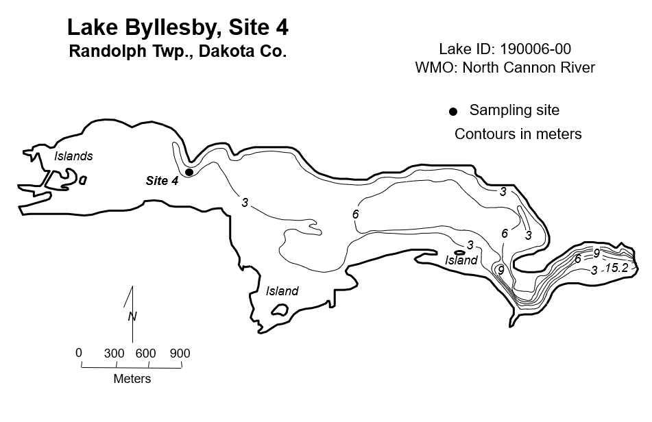 Lake Byllesby is located in Stanton Township. It covers approximately 1369 acres and has a maximum depth of about 15 meters.