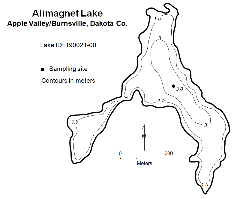 Alimagnet Lake is located in Burnsville. It covers approximately 109 acres and has a maximum depth of about 3 meters.