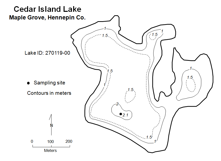 Cedar Island Lake is located in Maple Grove. It covers approximately 80 acres and has a maximum depth of about 2 meters.