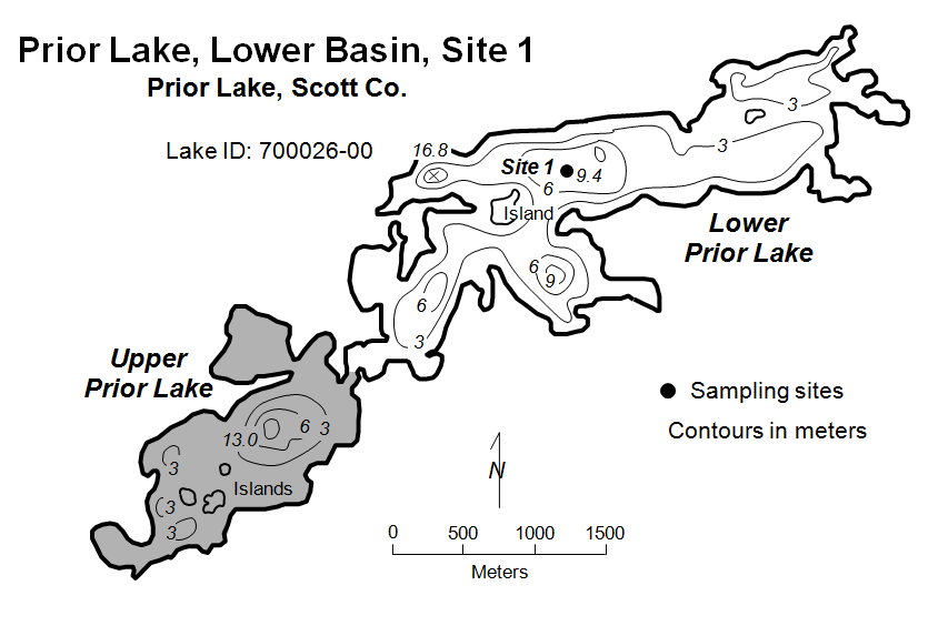 Lower Prior Lake is located in Prior Lake. It covers approximately 827 acres and has a maximum depth of about 18 meters.
