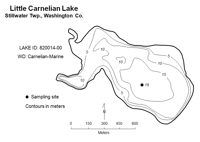 Little Carnelian Lake is located in Stillwater Township. It covers approximately 162 acres and has a maximum depth of about 21 meters.